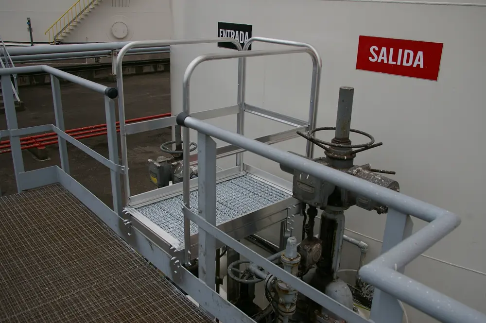 Специфічні алюмінієві конструкції, виготовлені та спроєктовані для нафтохімічних заводів. Платформи виготовлені з алюмінію та не ковзають , з підлогою Tramex і захисними перилами. Доріжки з алюмінієвого листа, Tramex або ґратчастої підлоги. Трубні транзити. Платформи для лазіння та доступ до танків і силосів. Лазіння по драбинах. Визначте модель, яка найкраще відповідає вашим потребам, і надішліть запит preventivi@svelt.it. вказуючи тип роботи та необхідний розмір. Ми відповімо якнайшвидше з рішенням.