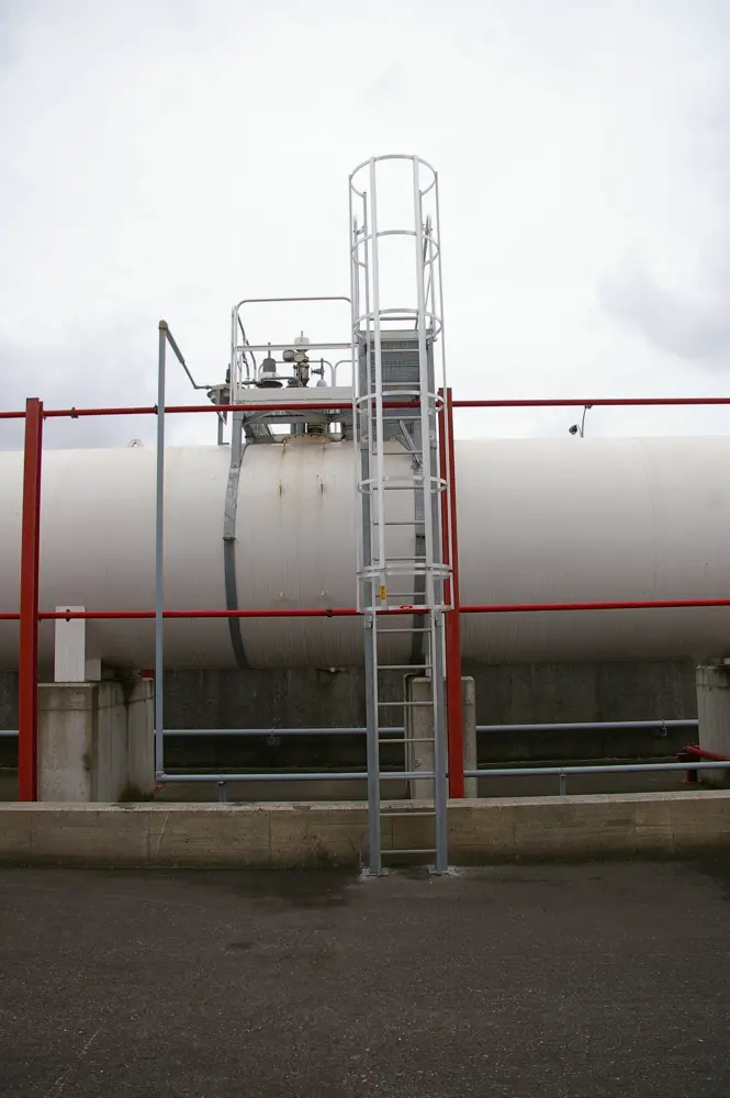 Сходинки стаціонарних драбин з кліткою або без неї мають протиковзкі накатки для стандартного використання.