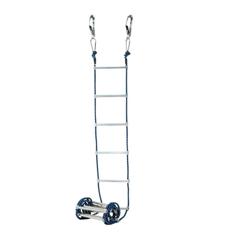 Мотузкова драбина з нейлоновими стійками і алюмінієвими поперечками, які не ковзають.