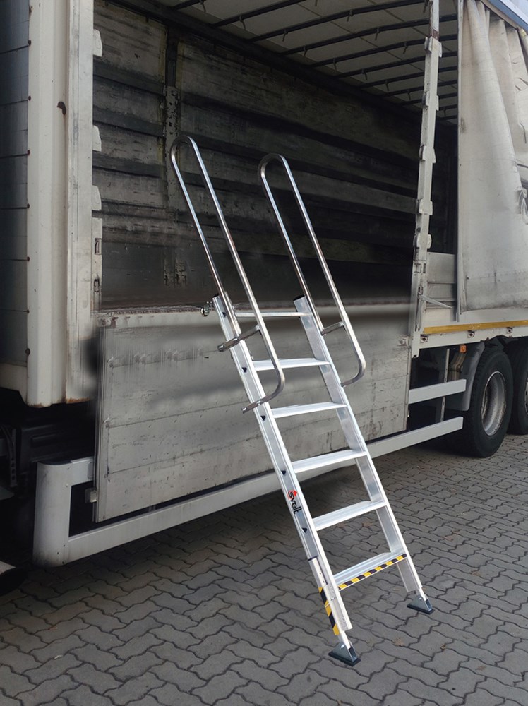 Серія професійних алюмінієвих драбин для доступу до транспортних засобів.